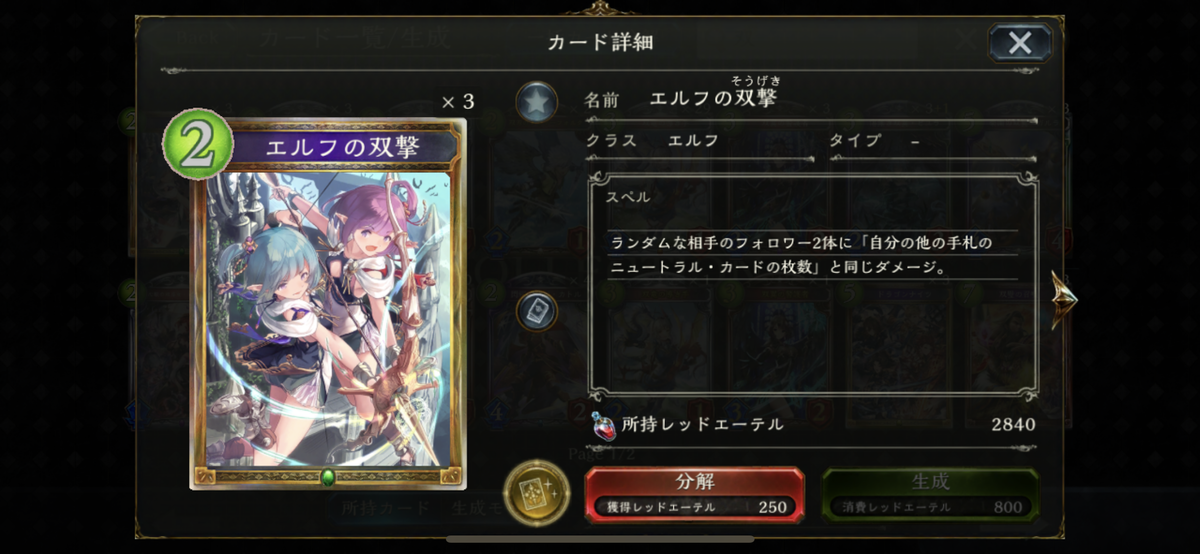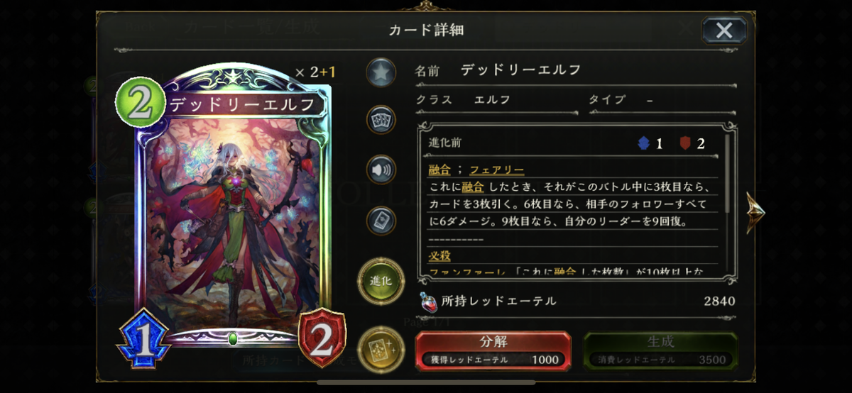 最近のカードが突然出てきたなと一瞬思ったのですが、このカードはSwitchシャドバト出身のオリジナルカードです。ゲームでのヴァネッサの切り札です。融合のロジックがないため、アプリ版とは大きく効果が異なります。