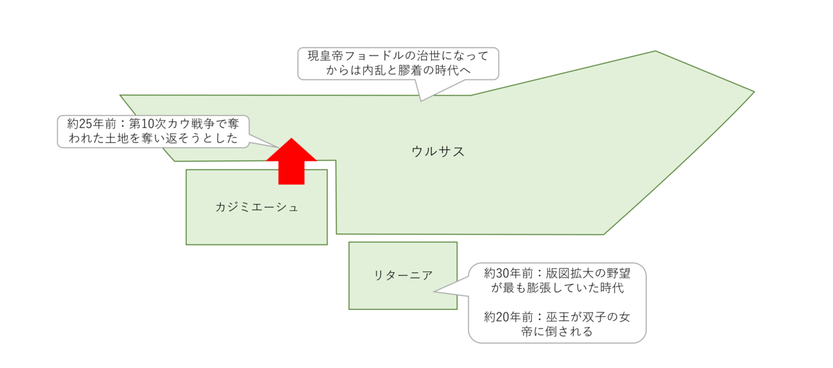 「夕景に影ありて」のお話の背景には、カジミエーシュ・ウルサス・リターニアの三国関係と、時間経過による関係性の変化があります。