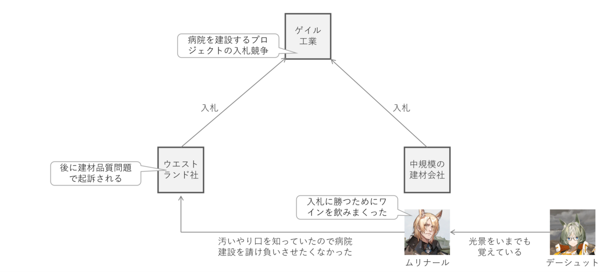 つまりこの事件のカギは、征戦騎士であるシチボルたちが何故かゲイル工業と繋がっているというところを見抜けるかどうかにありました。