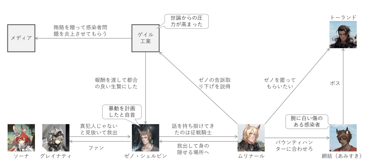ゲイル工業に雇われた感染者は、ゼノという労働者を首謀者に暴動を起こしたとされていました。しかしこれはゲイル工業とゼノの間の取引だったのです。報酬を提示されたゼノは、都合のよい生贄として逮捕されました。