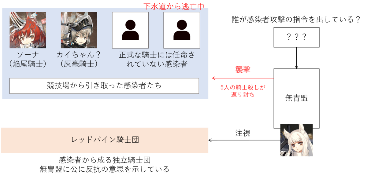 またレッドパイン騎士団という名前も挙がっていました。感染者騎士団で、無冑盟に公に反抗しようとしているとのことです。