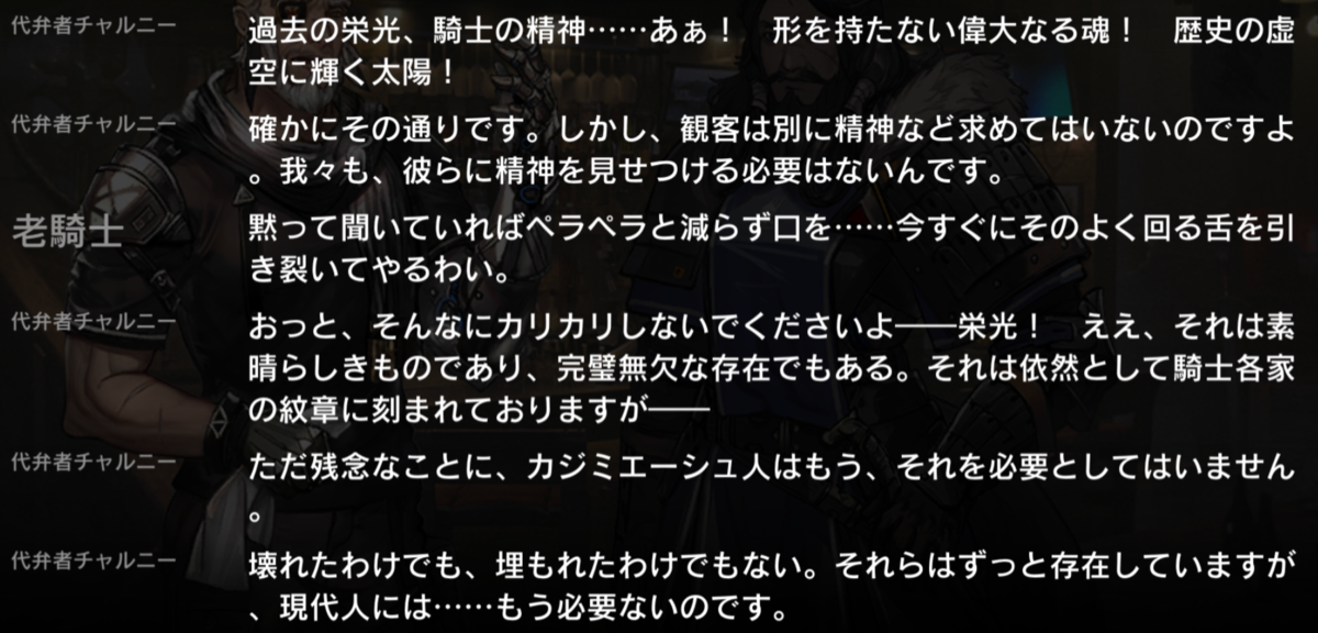 代弁者チャルニーがここで語ったことは、口の達者なペテン師の虚言のようにも見えますが、イベントの裏テーマを示しているようにも見えます。