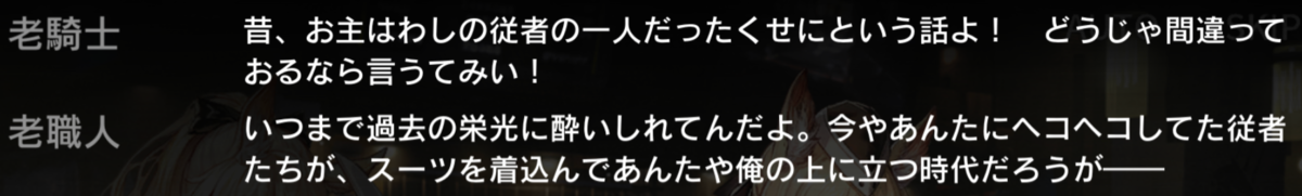 一方でかつて国を守った英雄である騎士たちの立場が、資本主義のうねりに流されて変容していく様子も考えさせられるものがありました。
