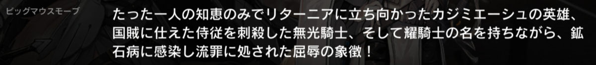 大騎士長はロドスへ責任者を派遣すると言っているため、これがおそらくグラベルなのだと思われます。グラベルは最も卑しい身分から努力を重ねて四級騎士の立場まで上り詰めた人物です。大騎士長と直で話せるということは征戦騎士の中で認められてきたのでしょう。