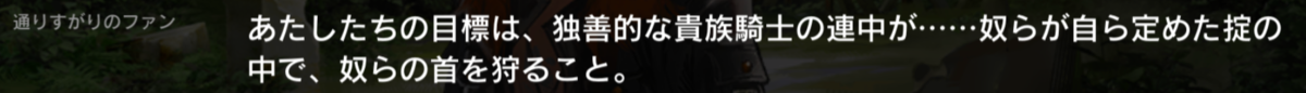 しかし武力という点では騎士に勝るものはありませんでした。いざ力比べになればすべて騎士たちの思い通りです。そんな状況を打破したいと思った何者かが、無冑盟という組織を作り上げます。カジミエーシュで唯一、騎士と対等に渡り合える武力組織で、構成員はそのまま騎士殺しと呼ばれます。