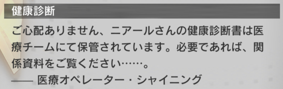 マーガレットのオペレータープロファイルには、感染者と書かれているものの、詳細な医療データはシャイニングが管理しているため見ることができません。チェンもそうですが、医療データが隠されるパターンは非常に怪しく見えるのですよね。