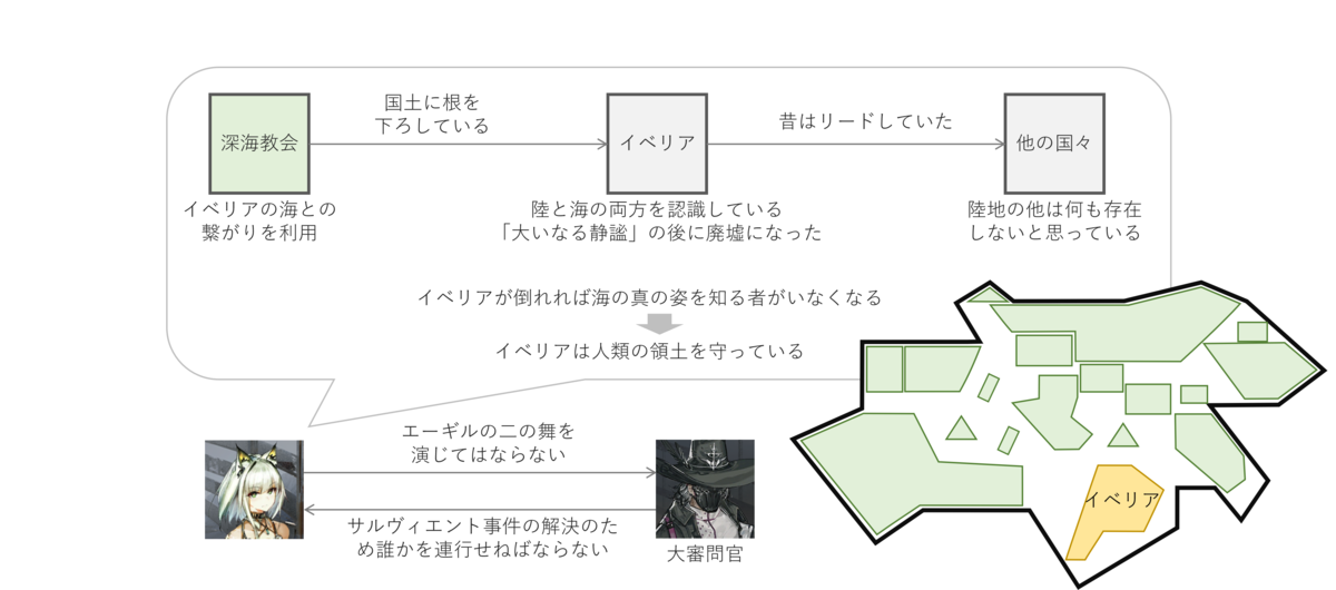 深海教会は何十年も前からイベリアに潜伏して力を蓄えていました。危険な存在である深海教会をイベリアは排除すべきなのですが、深くに根を下ろしていてそれができない状態になってしまっているようでした。