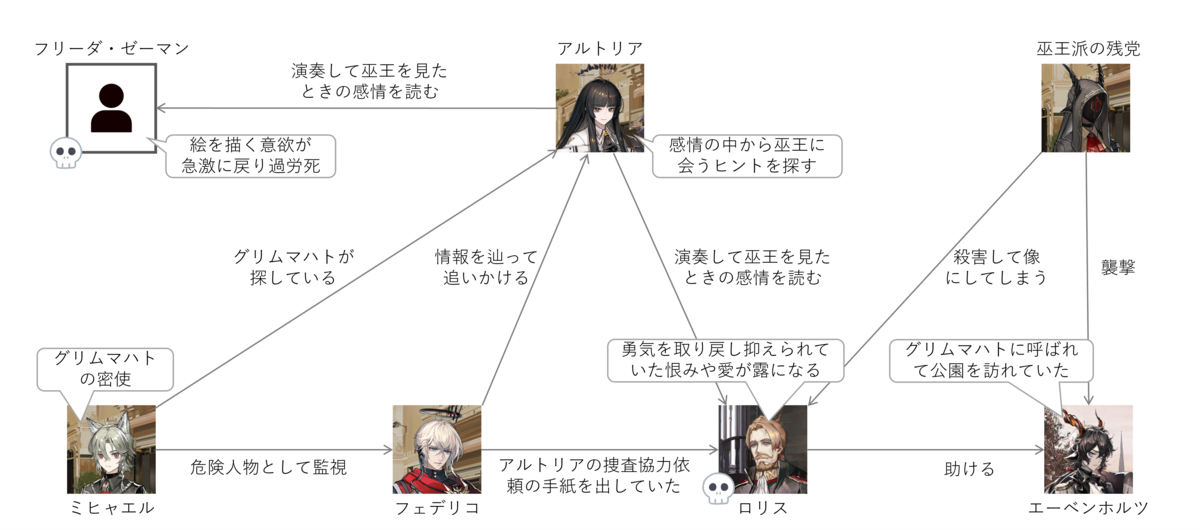 巫王派の残党がエーベンホルツを捕まえようとしている場面に遭遇したロリスは、エーベンホルツを助けて殺されてしまいます。こちらも単純にアルトリアのせいにはできないのですが、ロリスの死にはアルトリアが深く関わったことになります。