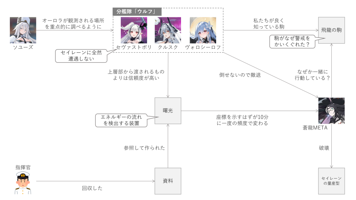 不思議なことに、蒼龍METAは飛龍の「駒」と一緒に行動していました。飛龍METAではないというのがポイントです。「駒」はKAN-SENの情報をもとにした、人格を持たないコピー品にすぎません。