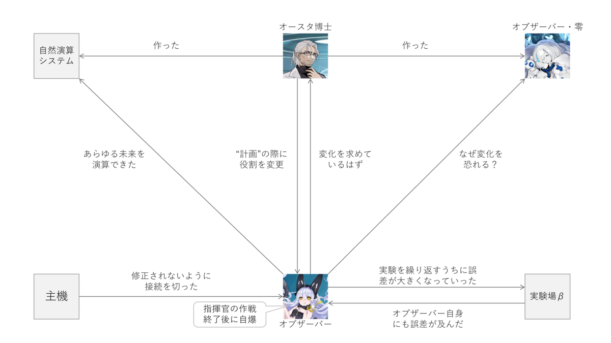 オブザーバーももともと、戦力の指揮ユニットとしてオースタ博士に作られました。しかし博士の「計画」とやらが発動する際に、実験場の監視ユニットに役割が変更されます。自然演算システムにアクセスする権限も付与されました。