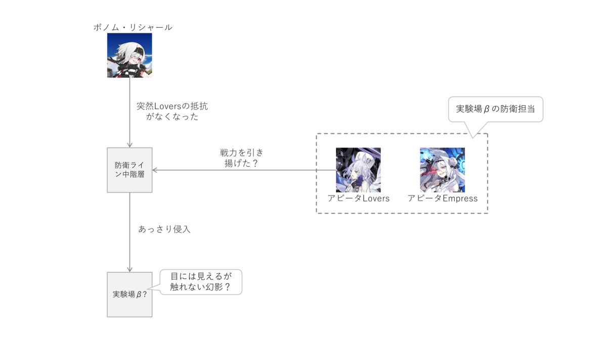 しかし今回のナラク特異点の出現に合わせるような形でこの防衛ラインに変化がありました。突然Loversが戦力を引き揚げ、リシャールは抵抗を受けずに実験場βまでたどり着いたのです。